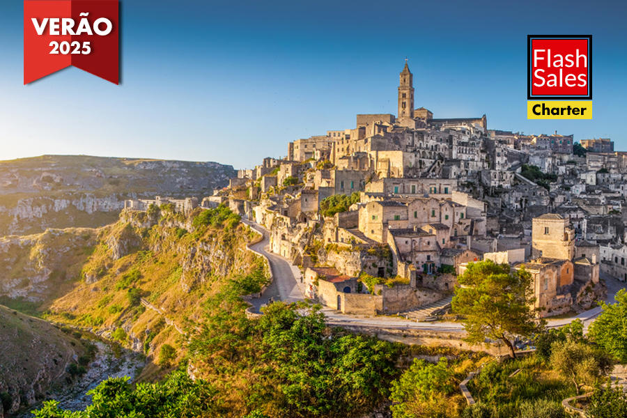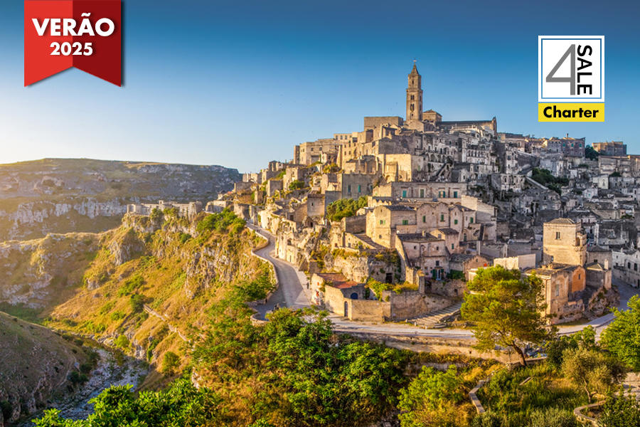 Preço desde 2.290 €: preço por pessoa em quarto duplo standard, nas partidas de 23 de junho, 21 de julho e de 11 de agosto 2026, do Porto, 5 noites em Bari e 2 noites em Lecce, em regime de alojamento e pequeno-almoço com 6 refeições incluídas, na classe V1.
